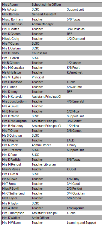 Our school team is committed to every student’s learning, wellbeing and sense of belonging. We work together to create a supportive and inclusive school where every child is set up for success.